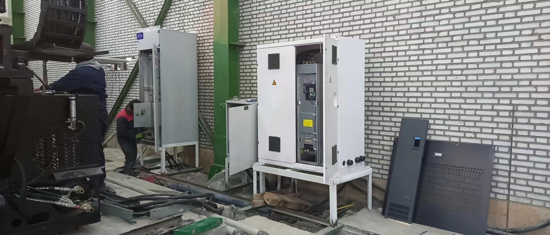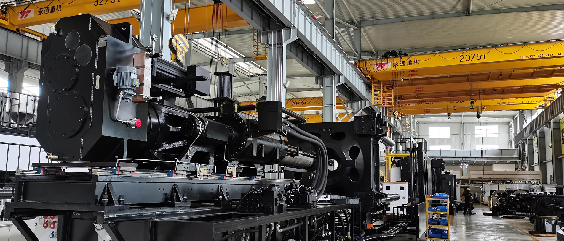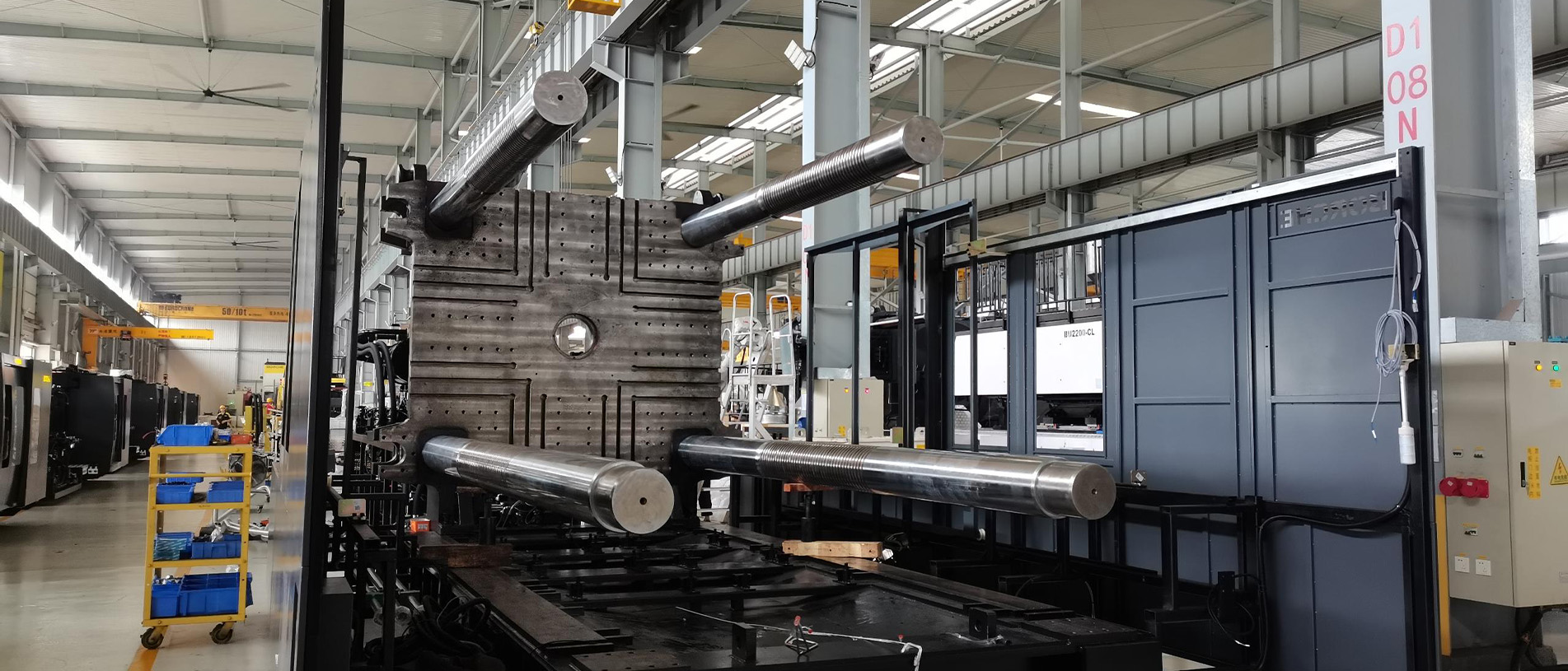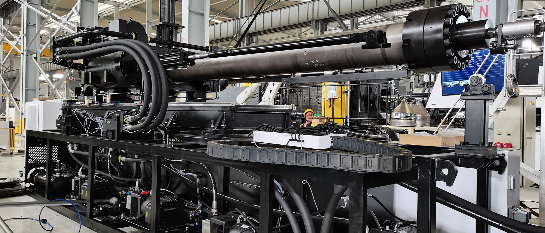 در بخش ماشینآلات، با توجه به درخواست اینکه کارفرما سیکل زمانی تولید یک پالت در حدود ۱۰۰ ثانیه را درخواست کرده بود از طرف کارفرما، می بایست مشخصات فنی ماشین تزریق و تجهیزات جانبی متناسب با این درخواست از حالت استاندارد ارتقا یابد انتخاب دستگاه استاندارد امکانپذیر نبود. اهم تغییرات در ماشین تزریق شامل تجهیز سیستم بارگیری دستگاه به سرووموتور و گیربکس مستقل ، افزایش ظرفیت تزریق ، ارتقای سیستم هیدرولیک و استفاده ار سیستم کنترل دقیقتر بوده. بنابراین دستگاه تزریق مورد نیاز با اصلاحات و تقویتهای فنی سفارشسازی شد؛ از جمله افزایش ظرفیت تزریق، ارتقای سیستم هیدرولیک، تغییرات در واحد گیره و تجهیز دستگاه به کنترلرهای دقیقتر. همچنین بههمراه دستگاه تزریق، ربات مخصوص تخلیه انتقال قطعه، سیستمهای چیلر های خنککاری توان بالا مناسب برای خنک کاری قالب تزریق و روغن هیدرولیک ماشین تزریق ، مجموعه مخزن و پمپ ها بجهت ایجاد سیکل بسته خنک کاری و سیستم انتقال مواد پلیمری متناسب با سرعت تولید انتخاب گردید سایر تجهیزات جانبی نیز ارائه شد و مجموعهای کامل تشکیل داد تا خط تولیدی بهصورت مستقل، پایدار و با راندمان بالا کار کند ایجاد گردد.