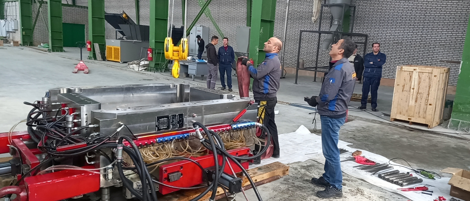 مرحله بعد، نصب، راهاندازی و آموزش بود. یکی از دغدغههای مهم پتروشیمی تبریز این بود که خطوط پس از راهاندازی نیازمند توقفهای طولانی نشوند. تیم فنی فولاد پولاد ماشین از ابتدا تا زمان دستیابی به تولید پایدار در محل پروژه حضور داشت. آموزش اپراتورها، تیم تعمیرات و نیروهای کنترل کیفیت در چند مرحله انجام شد تا مجموعه بتواند بدون وابستگی مستقیم به تیم سازنده، کنترل کامل خط را در دست داشته باشد. همچنین برای بخش تعمیرات قالب که معمولاً حساسترین قسمت چنین خطوطی است، مشاوره و خدمات ویژهای ارائه شد تا قالب در تمامی سیکلها تحت شرایط صحیح نگهداری شود.